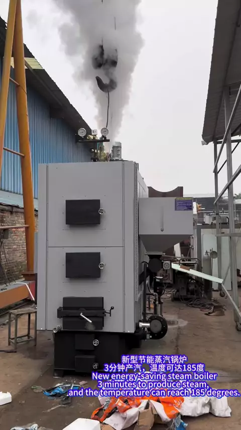 新型蒸汽锅炉,可燃煤、燃柴、燃生物物质颗粒。The new type of steam boiler can burn coal, firewood and biomass particles.