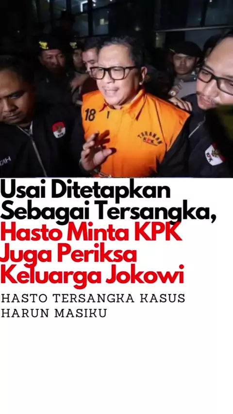 Sekjen #PDIP Hasto Kristiyanto resmi ditetapkan oleh KPK sebagai tersangka kasus dugaan perintangan penyidikan yang melibatkan #HarunMasiku. Kepada awak media, #Hasto meminta agar #KPK memeriksa keluarga #Jokowi.
