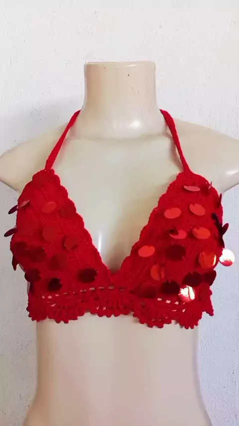 TOP DE CROCHÊ COM PAETÊS PARA O CARNAVAL TAMANHO M PASSO A PASSO NO MEU CANAL YOUTUBE