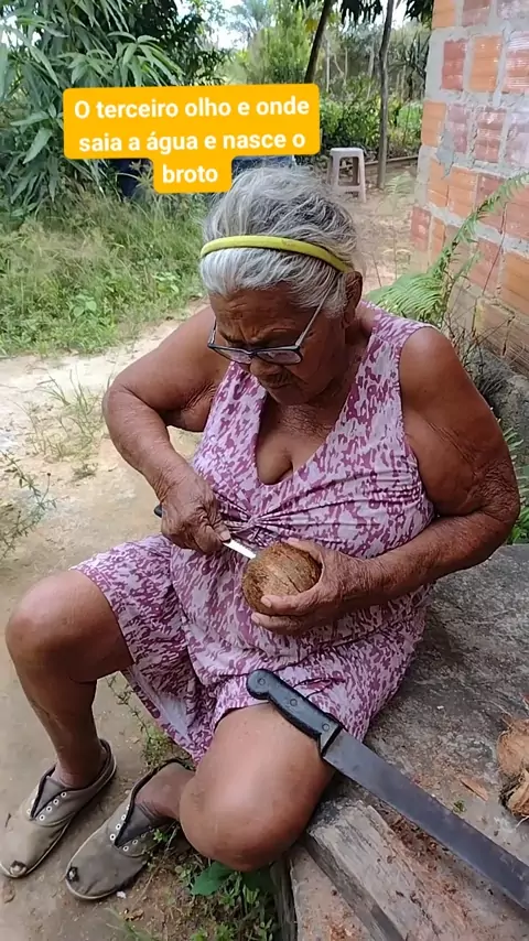 Mãe abrindo o coco pra nós temperar o p peixe 🐟 #cocoseco #segunda #descascando #vidanaroça