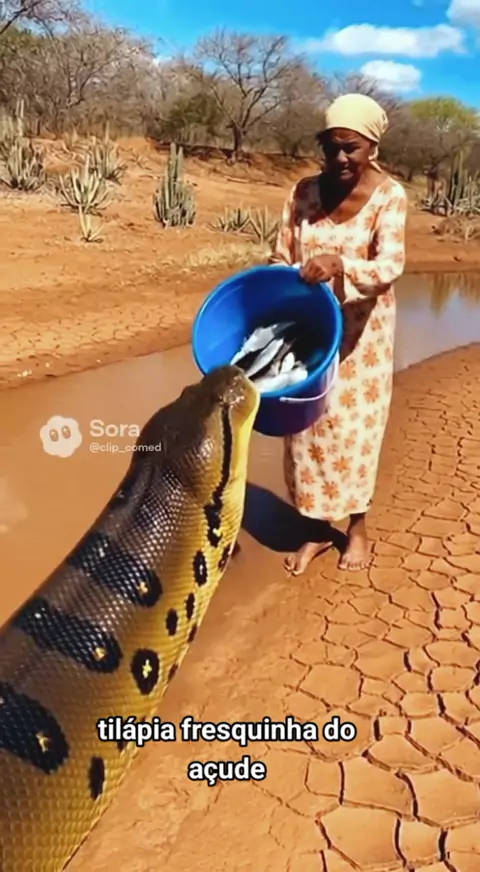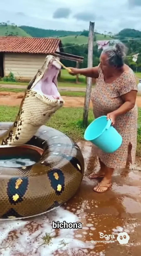 a velha dando um balde de peixe a cobra #animais #Comédia #humor #cobra #engraçado