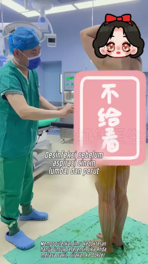 Pinggang dan perut disedot dan didesinfeksi sebelum operasi.