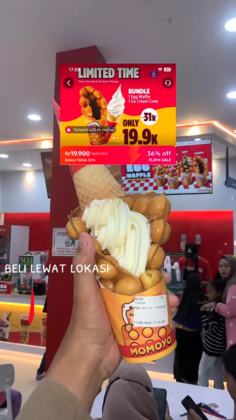 wahh egg waffle dan ice cream dapat harga 20 Ribu pakai voucher , padahal harga aslinya 31 ribu lohh #septemberkulinercerita #promoseruweekend #momoyoicecream #momoyo #eggwaffle