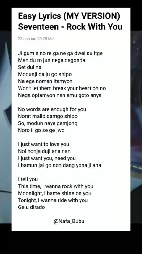 easy lyrics my version seventeen - rock with you, semoga membantu๐Ÿ˜‰#seventeen#seventeen17_official#seventeenrockwithyou#easylyrics#lyrics
