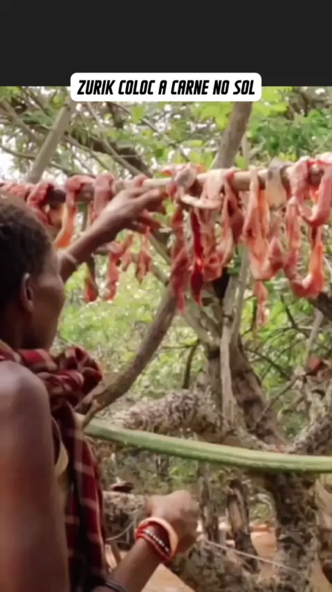 PARA QUE A CARNE NÃO ESTRAGUE RÁPIDO OS PRIMITIVOS TEEM O COSTUME DE SECAR ELA AO SOL,ASSIM ELAS DURAM POR MAIS DIAS E O SABOR FICA DELICIOSO 😋 #comidadiaria #Primitivo