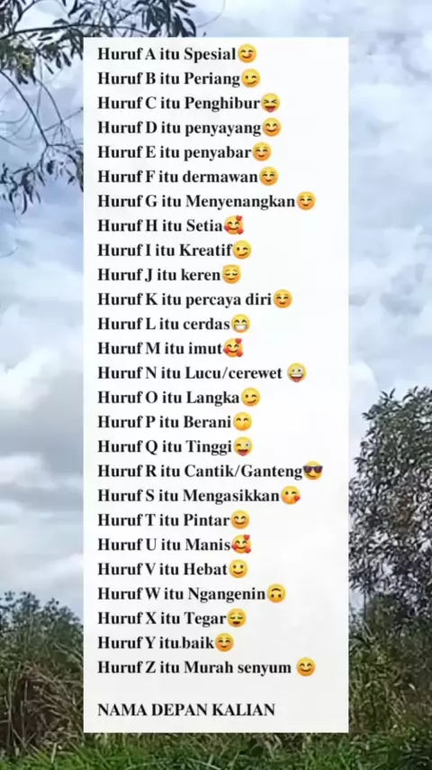 apa huruf depan kalian komen👉