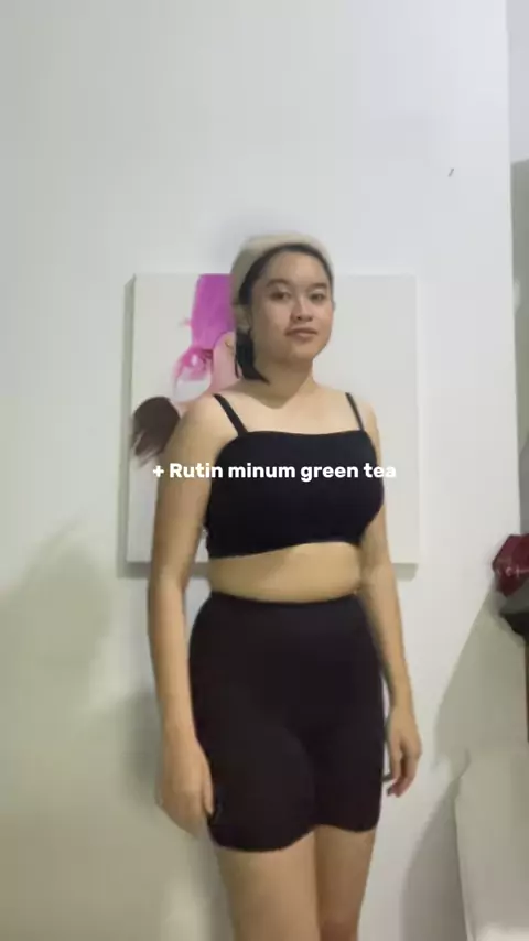Simpel tapi hasilnya bagus, yang penting harus KONSISTEN dan SABAR!โœจ Green tea -nya aku lagi suka @KalonOfficial.id ๐Ÿค #dietjourney #workoutmotivation #defisitkalori #GlowUp #