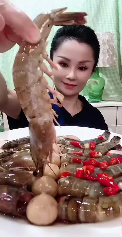 Camarão cru e engasgado Barris acabados estão prontos para comer poser.