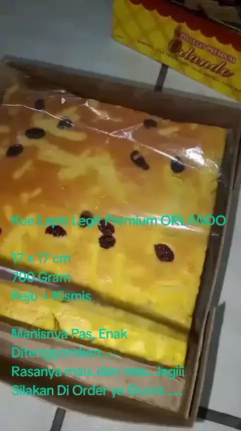 LAPIS LEGIT ORLANDO KEJU + KISMIS 17 x 17 cm 700 Gram Enak,tidak serett, manisnya pass Silahkan di Order ya.....